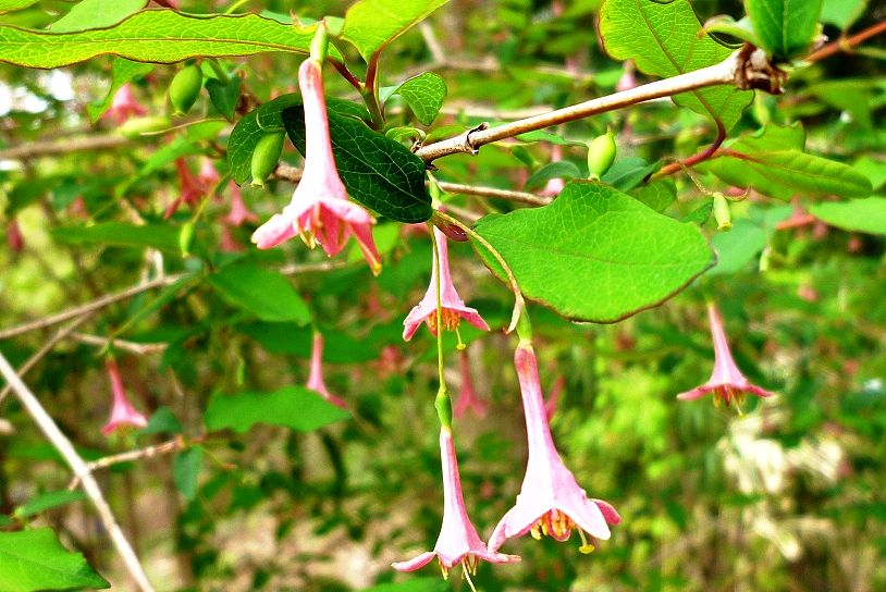 スイカズラ科スイカズラ属。落葉低木で4〜5月に、葉腋から細い柄を出して、