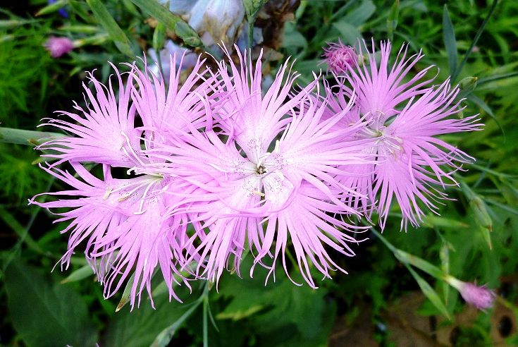 花弁は5枚で、先が糸状に細裂している。雄蕊は10本、雌蕊は花柱2本。