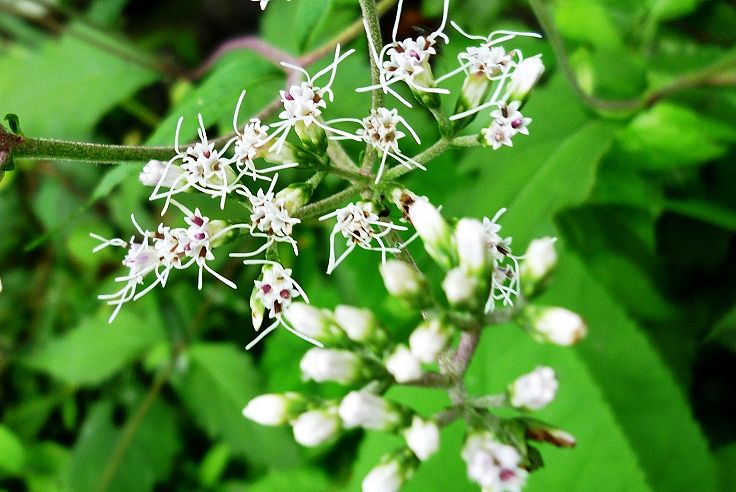 花期は8〜10月頃。フジバカマに似ているが、フジバカマの葉は3裂するのに対して本種は裂けないので区別できる。