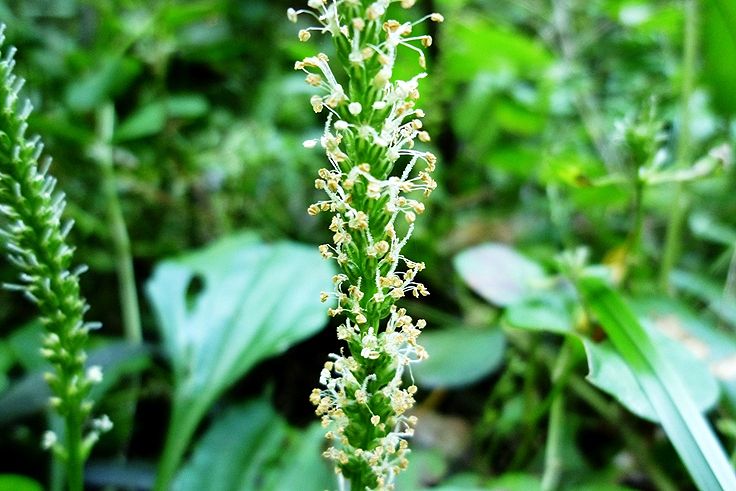 葉は葉柄があり、さじ型。花は穂状につき、緑色。