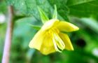 8月から10月にかけ、葉腋から1つの黄色い花が咲く。花柄は3cmほどで垂れて花は横から下向きに咲く。