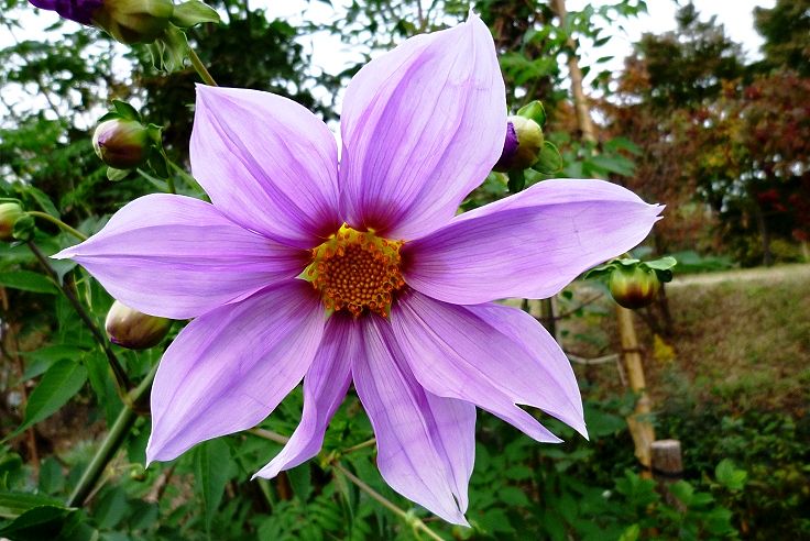 草丈が4m前後の頂上に花を咲かせる皇帝ダリヤには 観賞や撮影にも苦労します。 |