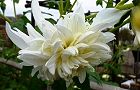 白花八重の清々しく豪華な皇帝ダリア。 上記の紫ピンク一重の一ヶ月後に咲きだす。