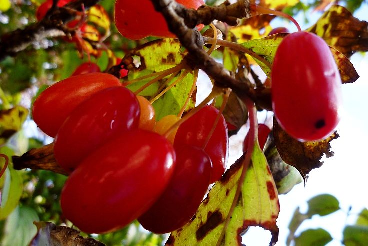 ミズキ科。朝鮮から江戸時代中期に果肉を薬用や漢方薬として利用するために渡来した。
