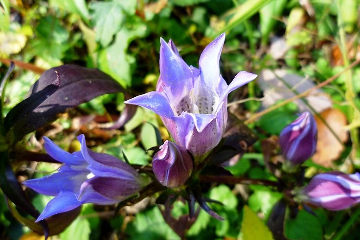 花期は秋。花は晴天の時だけ開き、釣り鐘型のきれいな紫色で、茎の先に上向きにいくつも咲かせる。