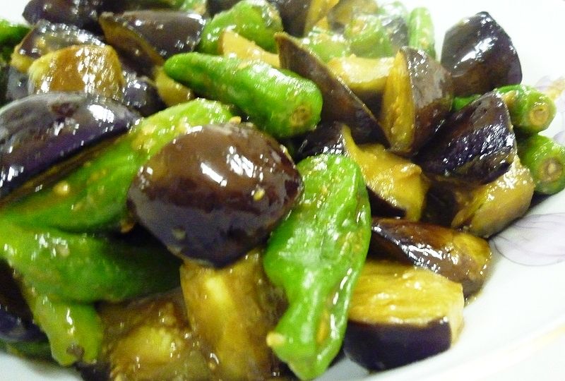 なすと獅子唐辛子の差し入れで簡単に作れる色彩も鮮やかなピリ辛味噌炒め。皆さんこれで夏バテ解消でしょうね。 |