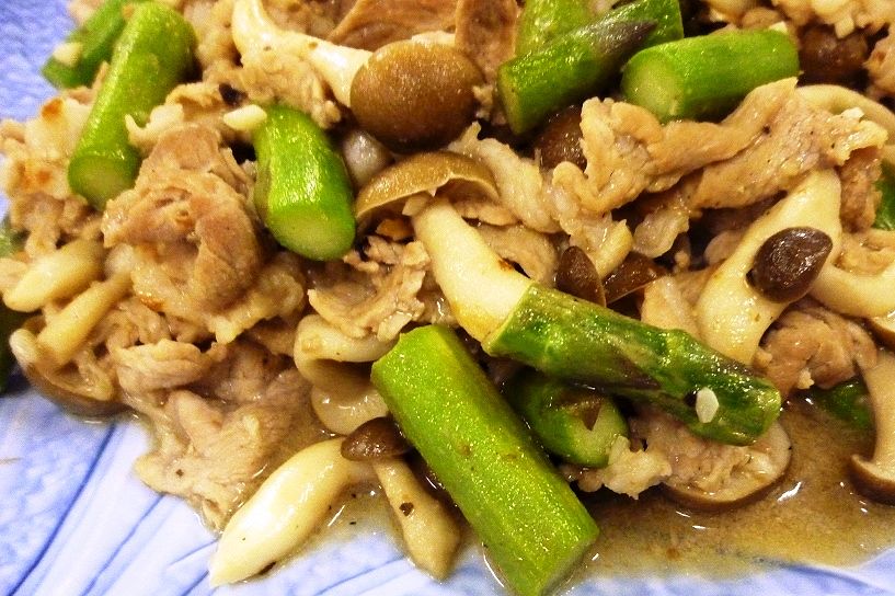 豚とアスパラのバタポン(バターポン酢和え)、鶏胸肉香味焼き、鶏皮としめじ炒め、じゃこ天・はも天、鮭とば、