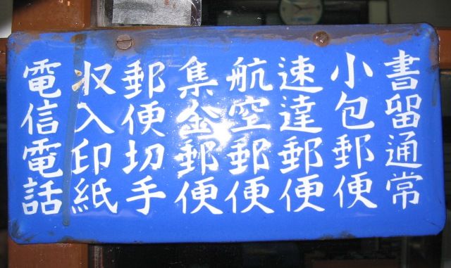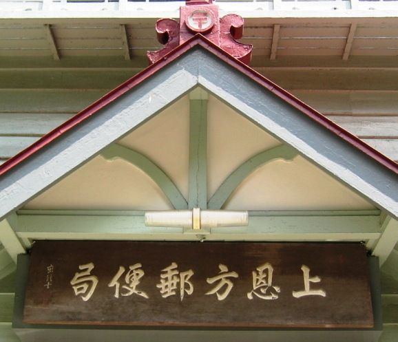 昭和13年(1938)に開局した上恩方郵便局の右書き看板。