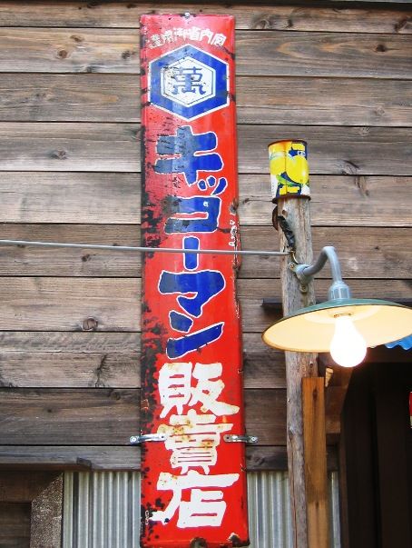 キッコーマン販売店の琺瑯看板。戦前の看板と思われる。