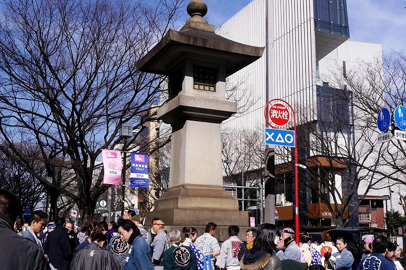 | 青山通り表参道交差点の大灯籠前の神輿集結場所 |