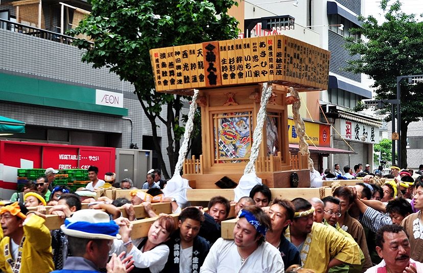 横浜が開港した安政6年(1859)6月に合わせ、横濱開港祭みこしコラボレーション実行委員会が毎年開催している。 |