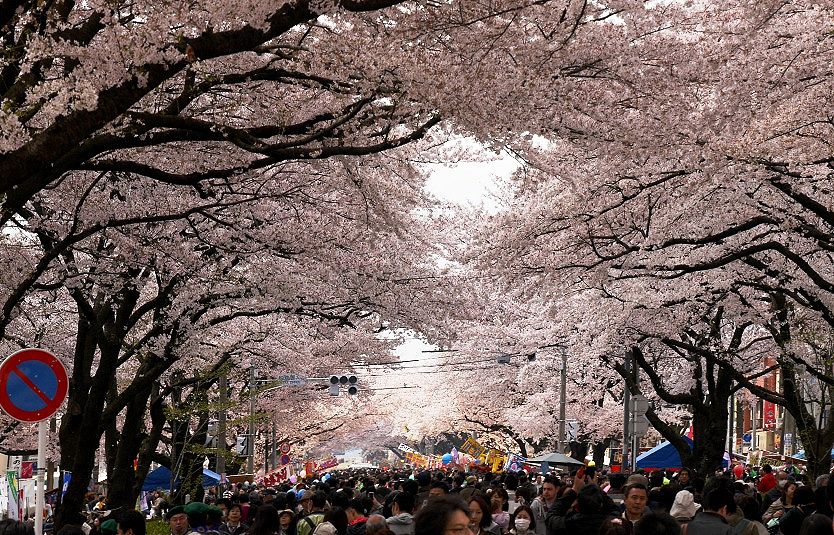 相模原市役所さくら通りから米軍補給所西門へと続く桜並木に、