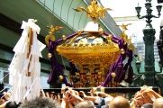 日本橋一丁目町会神輿が日本橋の擬宝珠を掲げて、