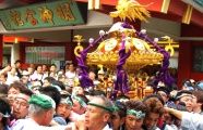 旧神田市場の大神輿が入り込むと境内はものすごい熱気に包まれる。