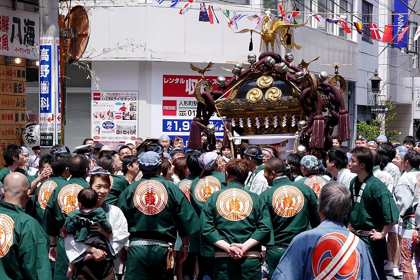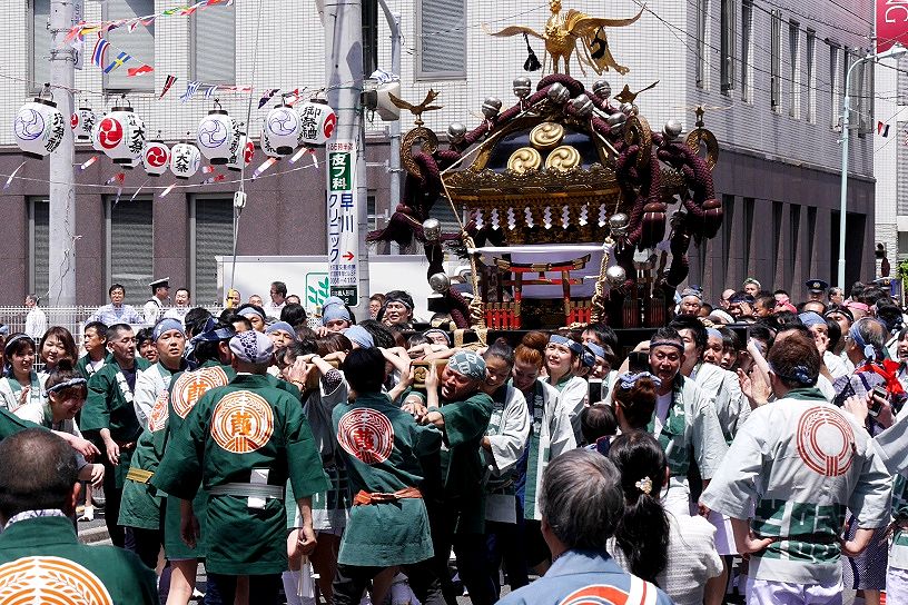 町会地区内を縦横に隈なく渡御する人形町一丁目芳人(よしにん)町会 |