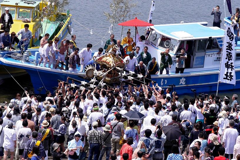 目黒川河口からお台場海浜公園まで運び、お台場で海中渡御をする。
