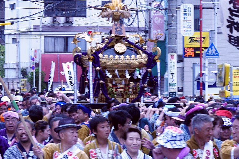 参道が狭くて鳥居下まではよいとで担ぐ |