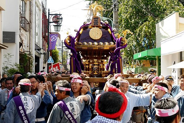 神社前路上からの 三基の担ぎ出し 目黒区自由が丘 1-24-12