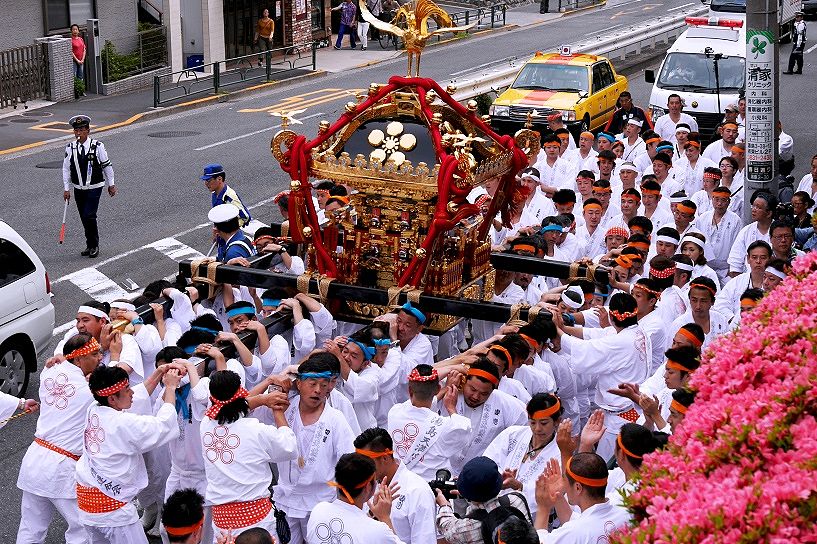 '14.05.25.(日曜) 宮出し8時〜宮入18時 (神幸祭は2年毎に鳳聯と宮神輿が台車で巡行)