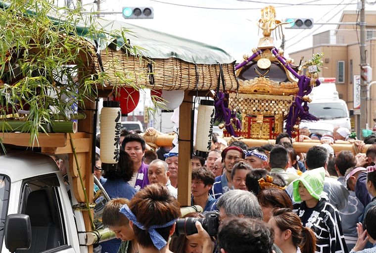 交通係りから路肩に寄れの指示が飛び傾きながらの渡御 |