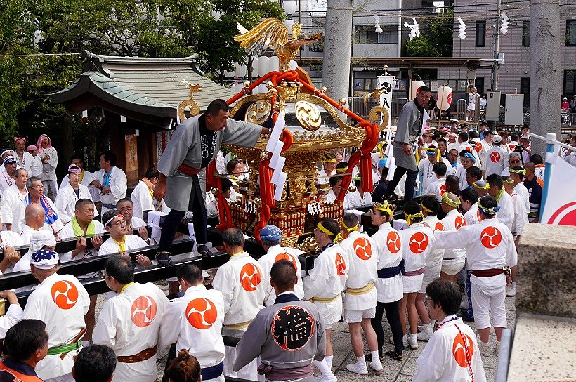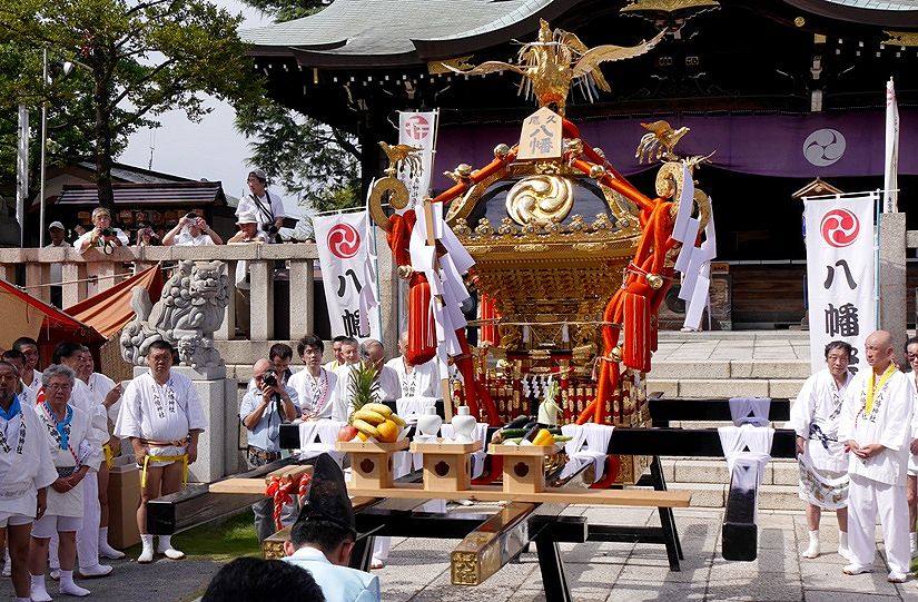 特記: 大振りの延軒屋根 五段の龍頭の桝組 大祭(H26年)は土曜 (2年毎渡御)・日曜 (4年毎神幸祭=台車渡御) |