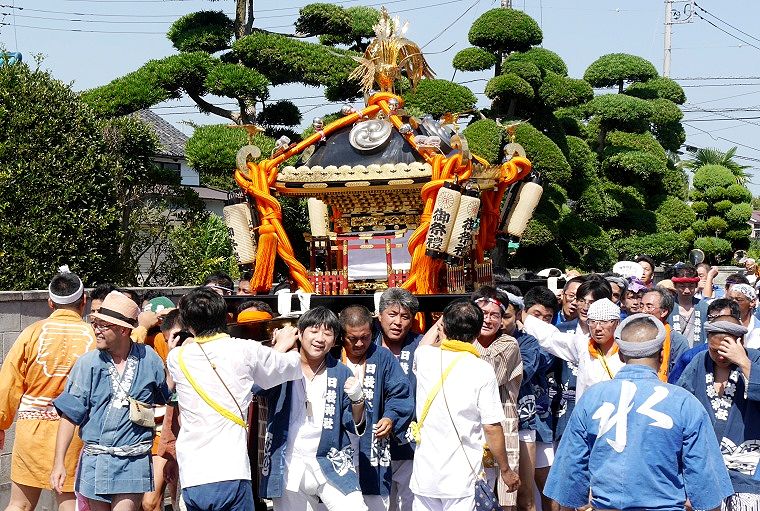 特記: 延軒屋根 簡素な平屋台造り 屋根一巴紋 胴に晒を巻いて渡御する宮神輿 近年は2年毎の渡御。 |
