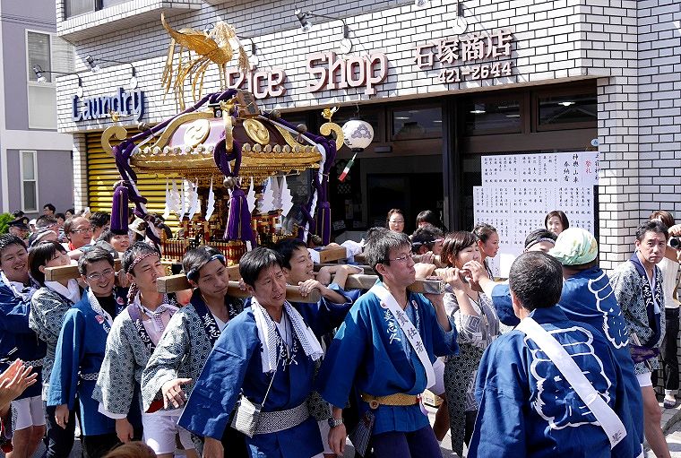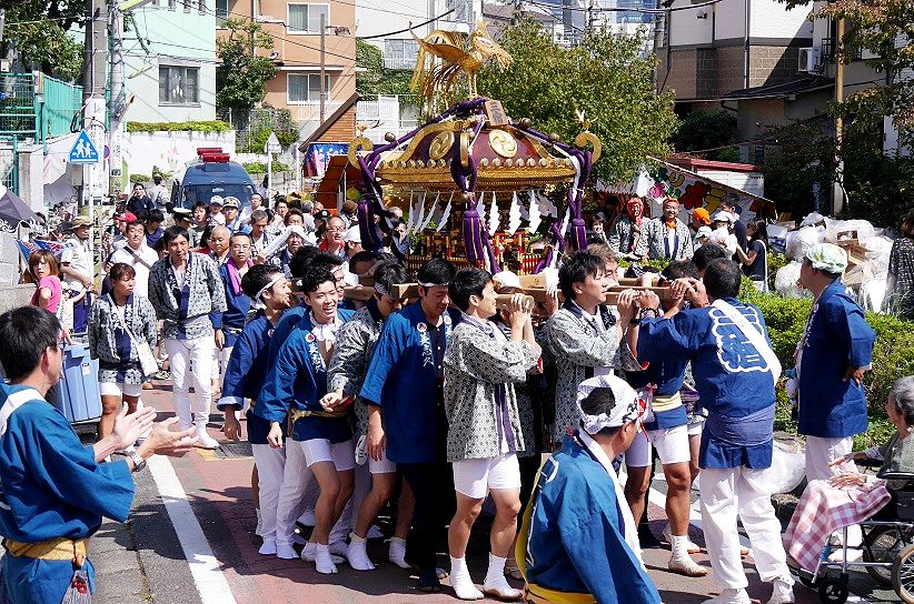 世田谷学園通りを和やかでゆったりした渡御で自然と頬笑みがこぼれ出る |