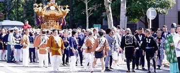 シーアイプラザ前から伊藤忠商事本社前までの広い歩道を悠然と渡御 |
