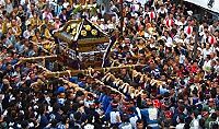 関東屈指の千貫神輿を延べ1600名の担ぎ手が甲州街道いっぱいに揺れ動く姿は圧巻 |