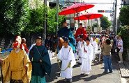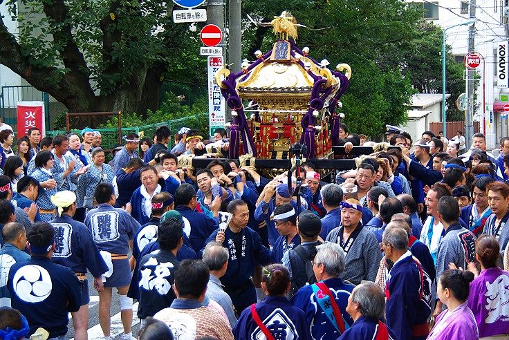 | 担ぐ喜びを手拍子で表して渡御する板橋双葉氷川神社 |