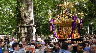 9月の氷川祭りに合わせて拝殿前から表参道の鳥居下までの試し担ぎです。