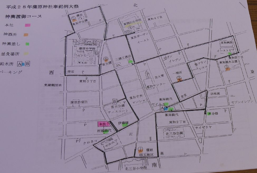 東和一丁目のマルエツ角から蒲原四五地区お神酒所を目指し威勢よく渡御 |