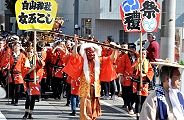 | 気合入れ鼓舞しあって息の合った担ぎ |