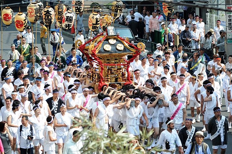 御本社大神輿は氏子若睦選抜によってのみ担がれる。