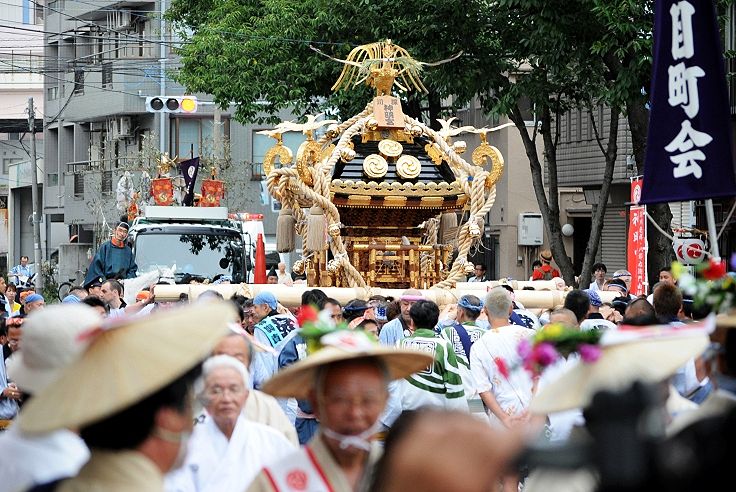 例大祭期間中の土曜日に行うのが恒例で12ヶ町を町内渡しで渡御する。