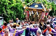 同時に明治18年(1885)開業の大磯海水浴場では(JR大磯駅から徒歩10分)同好会神輿二基の海中渡御が行われる。 |