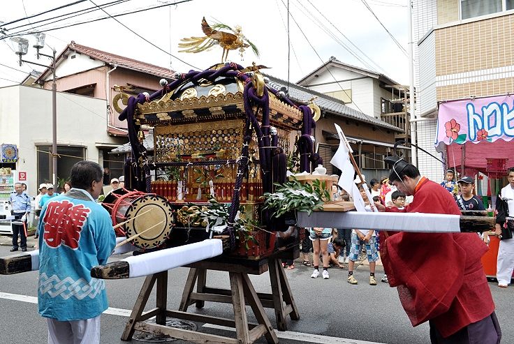 例祭の1日目は1丁目(検見川神社の直下)でのみ担がれて御仮殿へ、2日目は御仮殿の神輿駐機したまま動きなく、