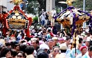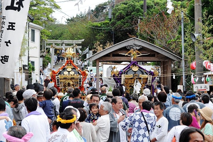 整備後ゆかりの腰越まで連合渡御するのを古例とした、湘南の夏祭りとして有名です。 |