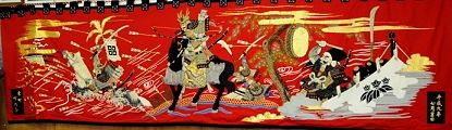 東町公民館に展示の源頼朝人形山車の緞帳 |
