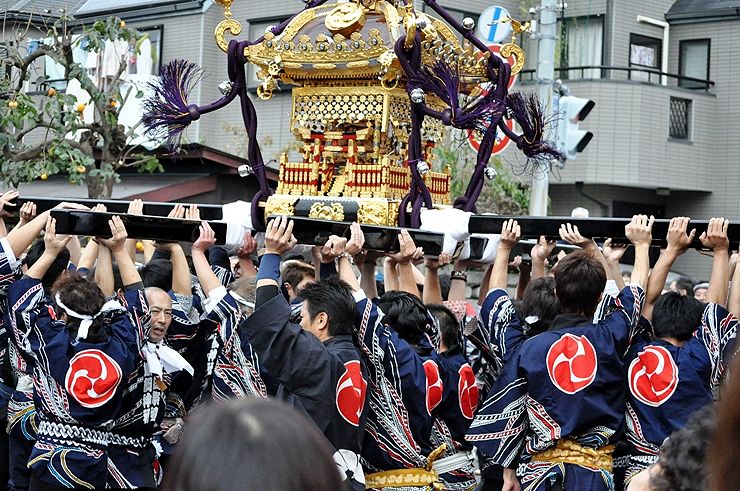 渡御路では落花生農家が多く、奉賛者の軒先で放り上げの神輿揉みを繰り返しながら渡御して行く。