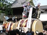 神輿還御で拝殿前に戻ってきた先祓い大太鼓と二之宮神輿。 |