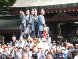 その脇を神輿の氏子役員達が渡御のため大観衆の参道の中、拝殿に向かう。