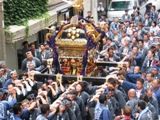 神輿追っかけて偶然にゲットしたこの写真はまさに庶民の祭りだ!神輿だ!のお江戸の味がする。