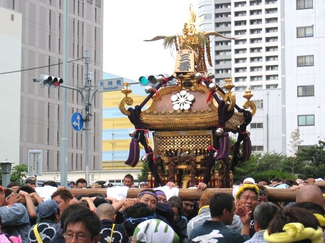 氏子担ぎ手達はこの神輿が一番だと云わんばかりの魂振りで氏子の情熱が響きます。 |