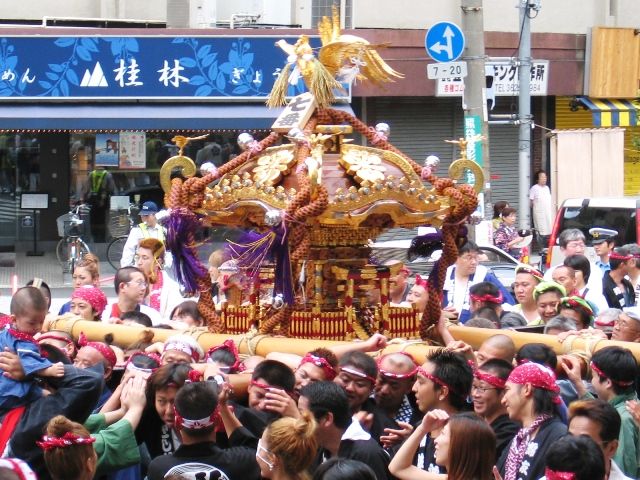| 宮入のため錦糸町駅前を渡御の7番神輿 |