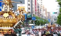 宮入のため各町内神輿が四ッ目通りそして蔵前橋通りを連なって渡御する様は正に神輿のオンパレード。