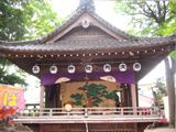 神楽殿で奉納される葛西囃子は江戸囃子の源流として東京都の無形民俗文化財です。