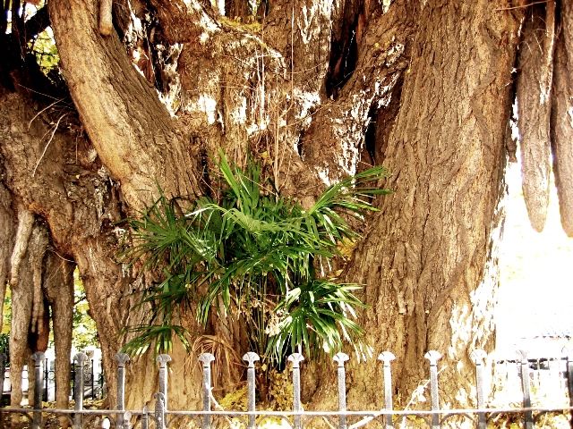 特徴:地表に長くスウーと伸びた古木特有の乳状下垂がみられる。 |