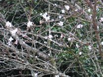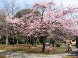 の鬱蒼とした杉林の静寂な参道を奥えと進めば武蔵野陵(昭和天皇) の前庭にまめ桜が可憐に咲いている。寒桜、コバザクラ(小葉桜)とも呼ばれ、 冬に咲くつぼみは全体の3分の1程で残りは春に咲く二度咲の不思議な習性の桜花である。
