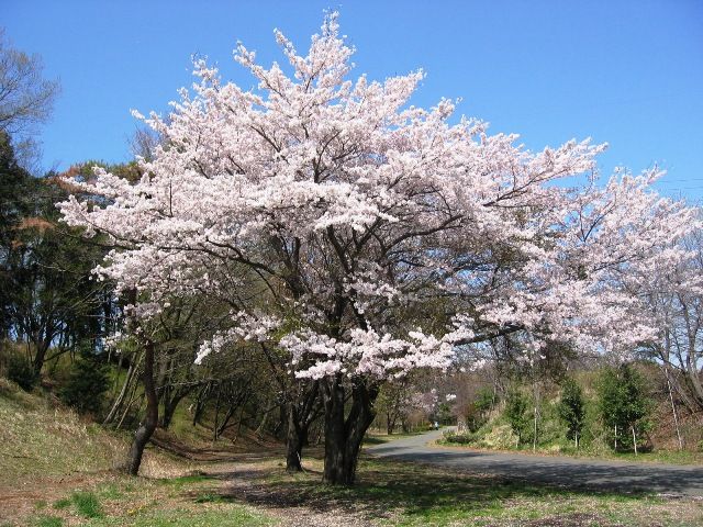 小野路の野津田の染井吉野。車道を覆うように伸びやかに枝を張っている。